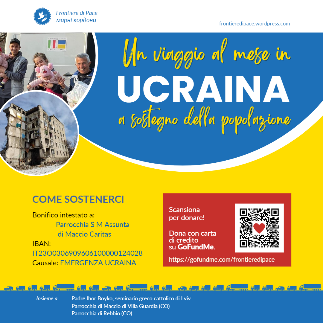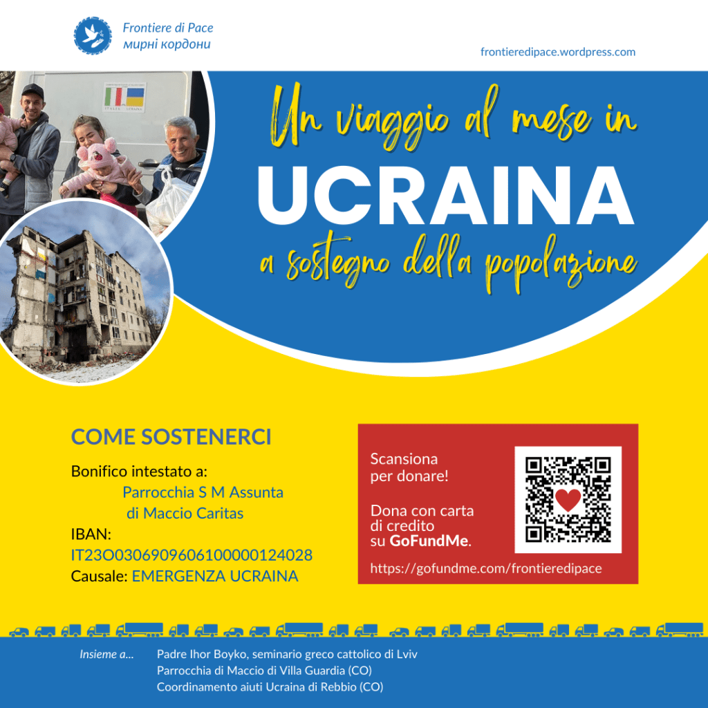 Abbiamo attivato sul sito GoFundMe una campagna per la missione “Un bilico per Kharkiv – Kherson”. Puoi donare tramite carta di credito o tramite PayPal.