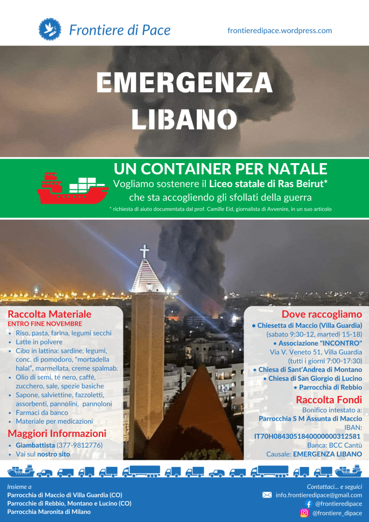 Noi non possiamo fare tutto ed agire sui grandi meccanismi che devastano la vita delle persone e dei popoli, però possiamo fare un container, inviarlo su una nave fino al porto di Beirut e rispondere alla richiesta di aiuto di alcuni dei centri di accoglienza di questa città.